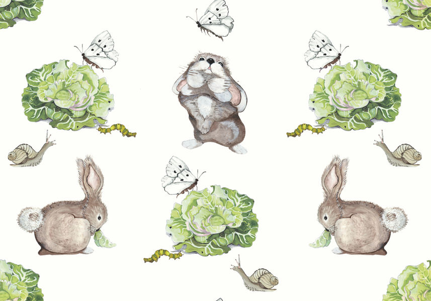 Inspired by an early childhood tale of being out in a field with cabbages and caterpillars, Amanda cleverly depicts the timeline of youth and beauty and intertwines it with her present-day granddaughter CocoMay’s bunny Rosie. Amanda’s youngest daughter now grown, currently runs a farm to table garden in Tuscany which completes the process of this family’s connection with nature and the cycle of life. It is a beautiful representation that captures the magical innocence of childhood, blossoming and taking flight only to begin again.